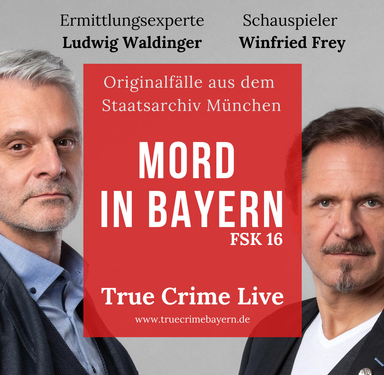 True Crime Live mit Schauspieler Winfried Frey und den Ermittlungsexperten Ludwig Waldinger & Horst Wanner